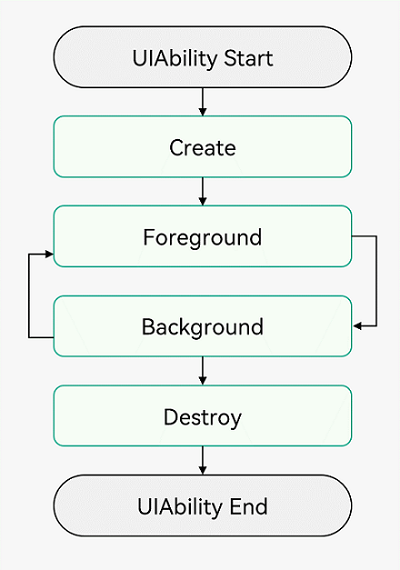 UIAbility的生命周期包括Create、Foreground、Background、Destroy四个状态,如下图所示。